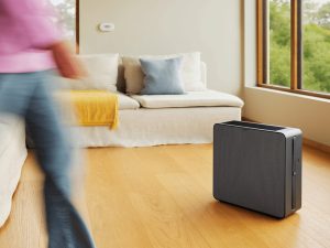 طراحی این گجت هوشمند به طور یکسان در حالت ایستاده عمودی یا افقی در فضاهای تنگ به خوبی عمل میکند. نمای بیرونی پارچهای با بافت ظریف خود، بیشتر شبیه روکش مبلمان است تا محفظههای پلاستیکی معمولی. این انتخاب جنس به Renew کمک میکند تا بدون اینکه ظاهری نامرتب یا بیش از حد فنی داشته باشد، با فضای داخلی اسکاندیناوی، مینیمالیستی یا معاصر ترکیب شود.