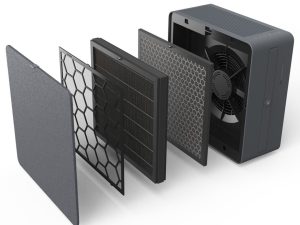 در پشت نمای بیرونی آرام، یک سیستم فیلتراسیون چهار مرحلهای قرار دارد. پیشفیلتر بیرونی پارچهای قابل شستشو از جنس پارچه درجه صوتی، موی حیوانات خانگی و گرد و غبار را جذب میکند. پیشفیلتر داخلی قابل شستشو، گرده و ذرات ریزتر را به دام میاندازد. فیلتر HEPA-13، 99.97 درصد ذرات تا 0.3 میکرون را حذف میکند، در حالی که زغال فعال، بوها و ترکیبات آلی فرار را جذب میکند.