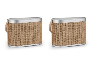 سپس Beosound A5، بلندگوی قابل حملی که حال و هوای رادیوهای قدیمی را به شما میدهد، وجود دارد. Century Weave مجهز به بافت کاغذی رافیا به رنگ بژ و قهوهای بلوطی است که برای بازآفرینی توریهای شطرنجی بلندگوهای دهه ۱۹۵۰ و تقلید از زیباییشناسی اولین رادیوهای بنگ اند اولافسن طراحی شده است. آنها چیزی بسیار نوستالژیک را برداشته و آن را کاملاً امروزی کردهاند. این بلندگو دارای الگوی Century Weave در سراسر توری خود است که با قاب آلومینیومی برس خورده جبران میشود، در حالی که بند و کابل آن با رنگهای قرمز و آبی هماهنگ شدهاند. این صدای قابل حمل بیشتر شبیه یک اثر هنری است که با افتخار به نمایش میگذارید.