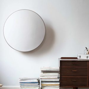 با این حال، قطعاً Beosound A9، بزرگترین قطعه این مجموعه، خیرهکننده است. A9 با رنگ آبی قرن بیستمی عرضه میشود و دارای پارچه Cadence صدساله Kvadrat در کنار یک حلقه آلومینیومی طبیعی و پایههای برس خورده است، با جزئیاتی که عمداً محصولات B&O را از دهه ۱۹۸۰ تداعی میکند. اگر با A9 آشنا نیستید، یک بلندگوی دایرهای عظیم را تصور کنید که بلافاصله قابل تشخیص است و کاملاً متفاوت از هر چیز دیگری در بازار است. به لطف طراحی ماژولار و قابل تعویض و نرمافزار قابل بهروزرسانی، طوری طراحی شده است که کاملاً برای آینده مقاوم باشد. در دنیایی که از مد افتاده است، تعهد به طول عمر تقریباً رادیکال به نظر میرسد.