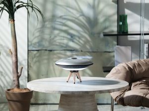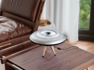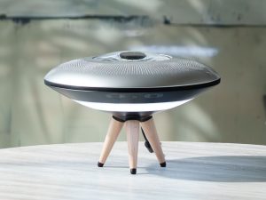 در طول سالها، تعداد انگشتشماری از بلندگوهای فروفلوئیدِ خیالانگیز به خاطر تبدیل صدا به منظرهای تماشایی توجه را به خود جلب کردهاند. از ویژوالایزر پنجرهمانند ون در والس گرفته تا طرحهای کپسولی الهامگرفته از ناسا که مضامین اکتشافات فضایی را تداعی میکردند، یا بلندگوی بلوتوث سلول نمایشگر فروفلوئید داکد یونگ. این دستگاههای جنبشی فقط موسیقی پخش نمیکنند، بلکه آن را اجرا میکنند. با تکیه بر این حرکت هنری، آزمایشگاه Fusion مستقر در تایوان، UFaudiO را خلق کرده است، یک بلندگوی بلوتوث مجسمهای که صدا را با حرکتی هیپنوتیزمکننده قابل مشاهده میکند. UFaudiO که ترکیبی از سیستم صوتی و چیدمان هنری است، هر آهنگ را به یک شکل موج زنده تبدیل میکند که از طریق یک استخر مایع سیاه با واکنش مسحورکننده نمایش داده میشود.