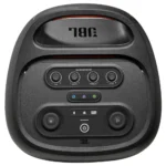 پنل کنترل اسپیکر JBL با یک پوشش لاستیکی محافظت شده و شامل دکمه‌های متنوع برای تنظیم نور و صدا، و همچنین دکمه‌هایی برای پخش و تغییر موسیقی است. در پشت اسپیکر، ورودی‌های مختلفی برای اتصالات موجود است که شامل پورت برق، جک میکروفون، ورودی گیتار، و پورت USB نوع A برای استفاده به عنوان پاور بانک میشود.