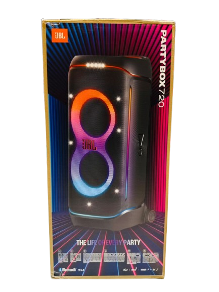 اسپیکر جی بی ال PartyBox 720 با بهره‌گیری از صدای Pro Sound JBL، صدای قدرتمند و بیس عمیقی ارائه میدهد و همراه با نمایش نوری جذاب همگام با موسیقی شما، میدرخشد. علاوه بر این، اسپیکر پارتی‌باکس 720 با اپلیکیشن JBL PartyBox سازگار است. اسپیکر پارتی‌باکس 720 تا 15 ساعت زمان پخش دارد و با اپلیکیشن JBL PartyBox سازگار است.