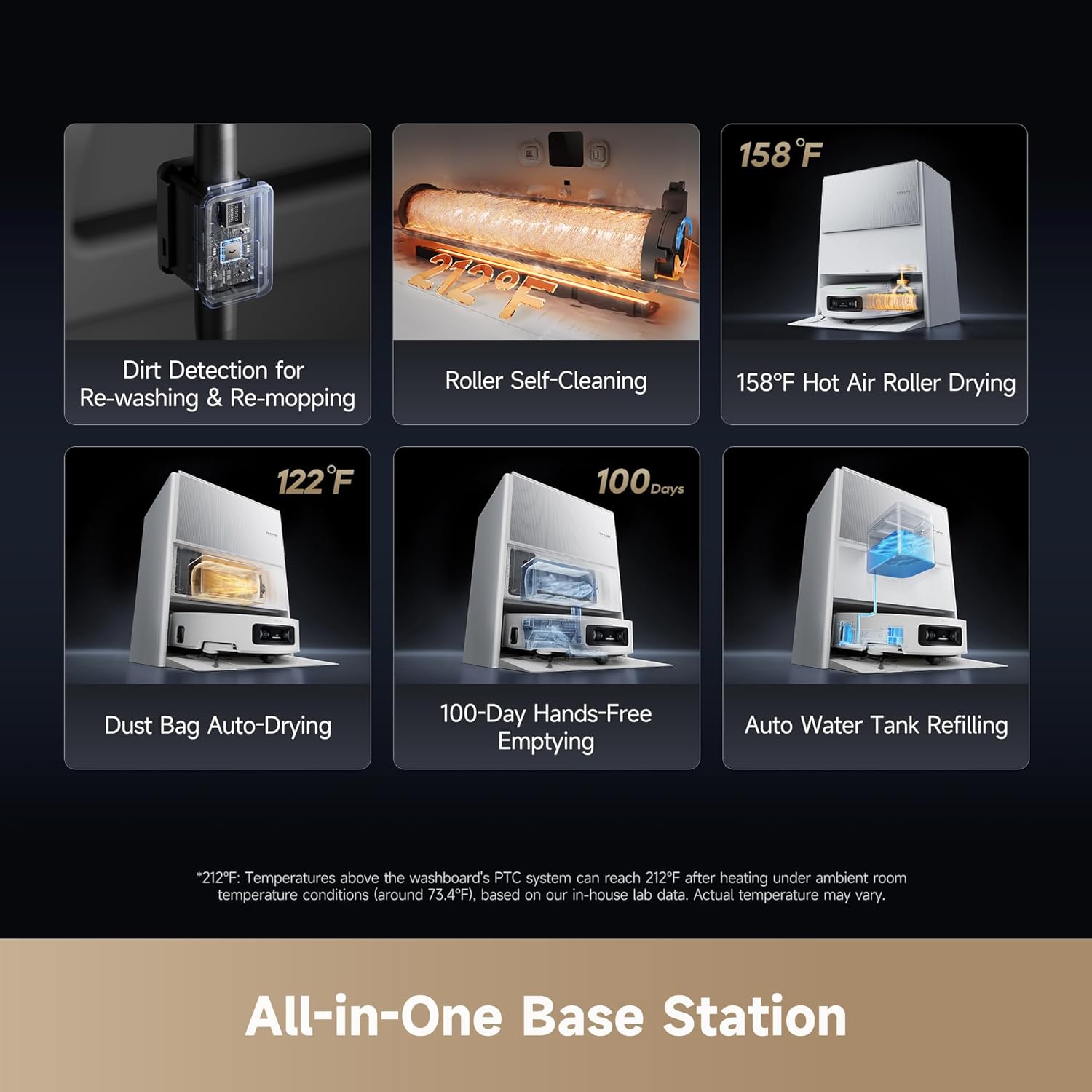 با یک برنامه مراقبت شخصی داغ بعد از هر بار تمیز کردن، ربات با فناوری خود تمیز شوندگی ۱۰۰ درجه سانتیگراد ThermoHub™ یک “حمام داغ” میگیرد و غلتک را عمیقاً تمیز میکند و با باد گرم آن را خشک میکند و حتی آب و محلول را دوباره پر میکند تا شروعی تازه داشته باشید. سیستم PTC پس از تمیز کردن به سرعت خنک میشود و لمس تخته شستشو را برای همه افراد خانه شما ایمن نگه میدارد.