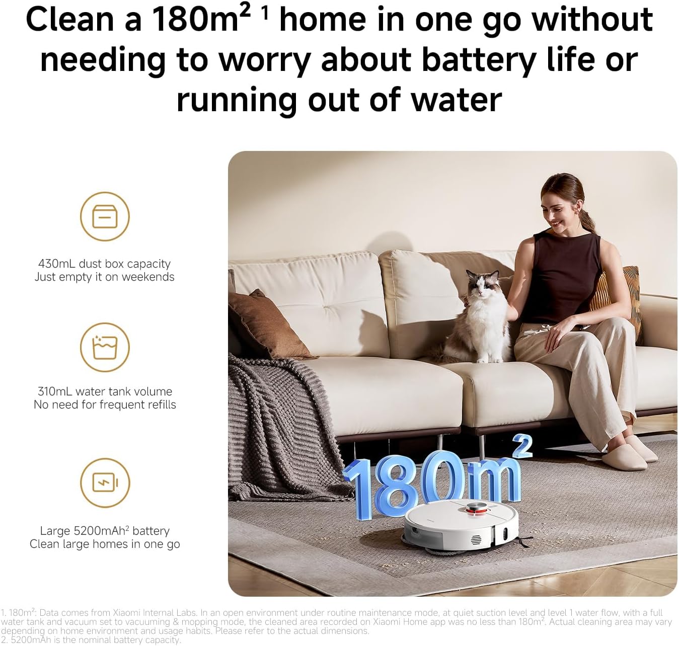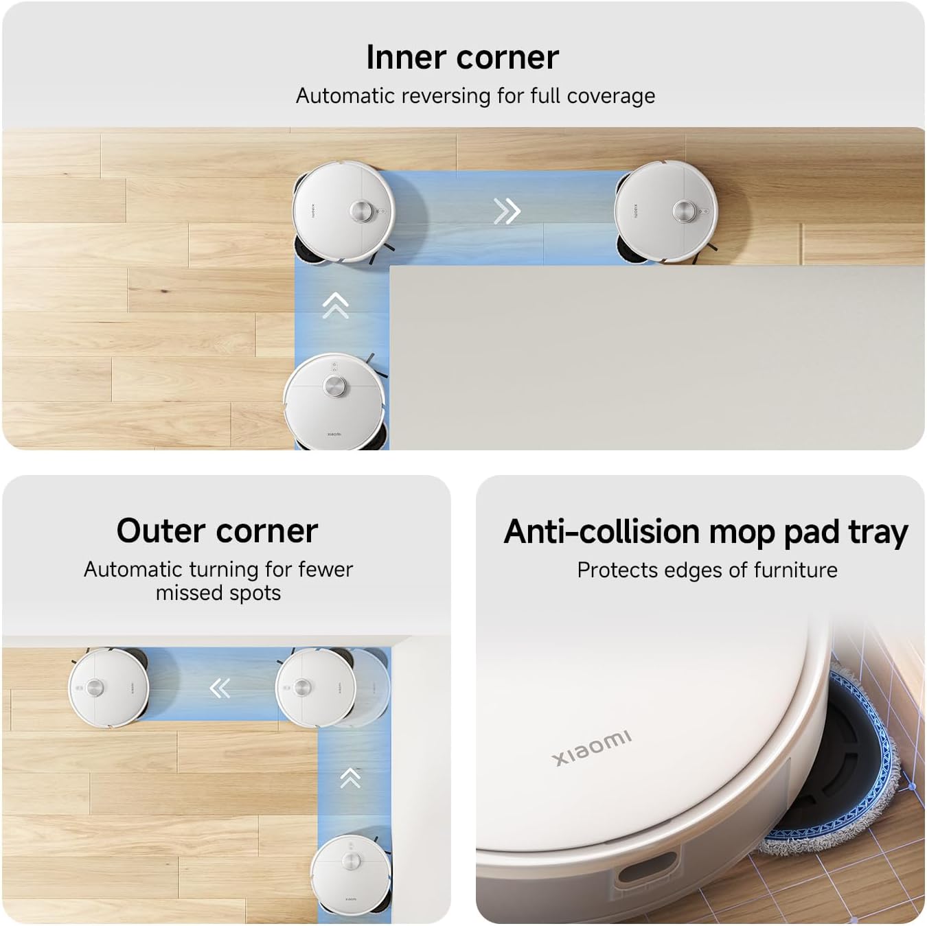 این محصول کارآمد مجهز به یک پوشش برس اصلی شناور هوشمند است که به طور خودکار با ارتفاع‌های مختلف کف سازگار می‌شود و یک موتور بدون برس بادوام، به راحتی از موانع تا ارتفاع ۲۰ میلی‌متر بالا می‌رود. این ویژگی‌ها خطر برخورد و گیر کردن را کاهش می‌دهند و تمیز کردن روان و کارآمد را تضمین می‌کنند.